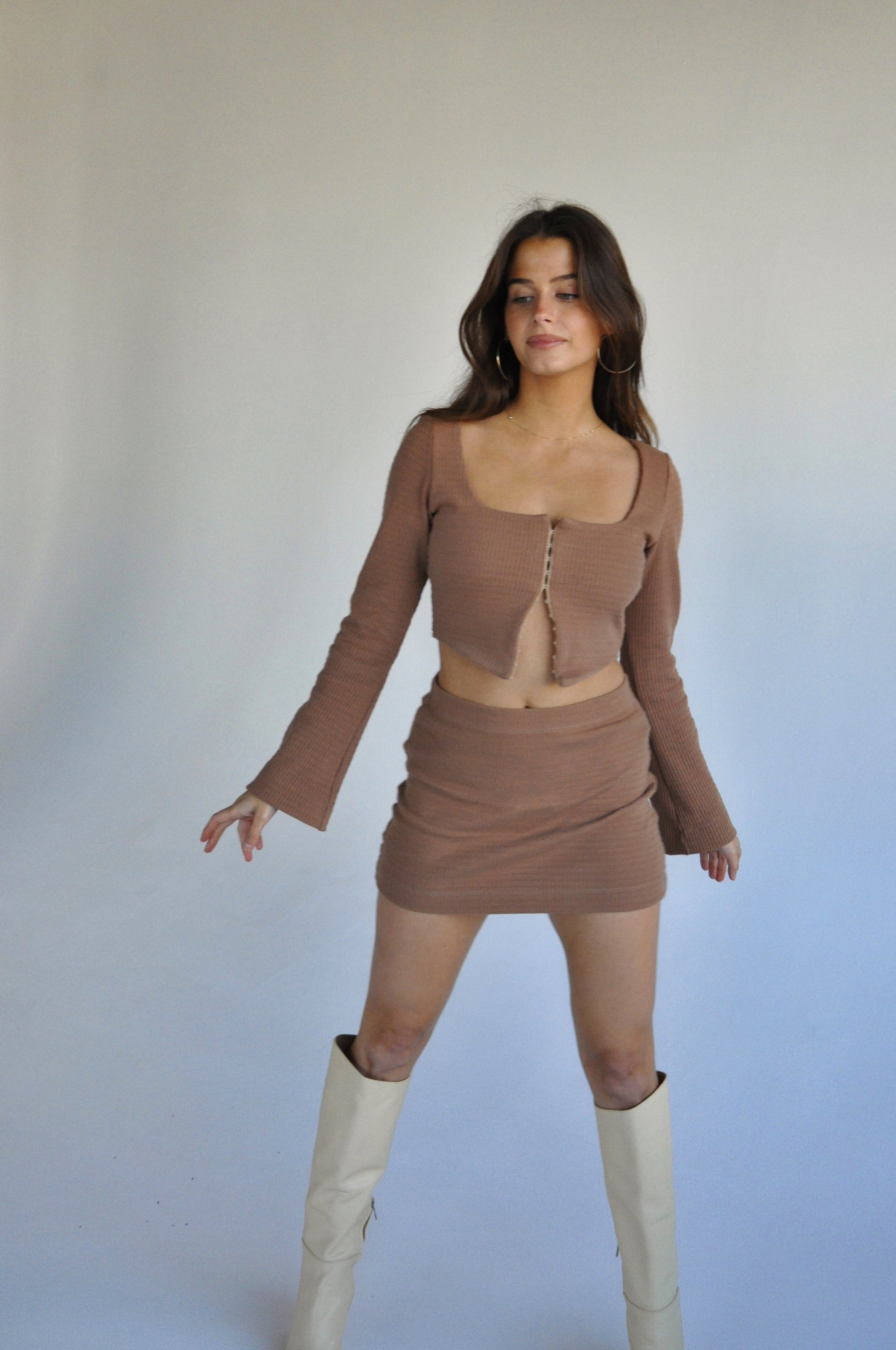 Our Coco Knit Mini is a mid rise mini skirt with a soft cotton elastic waistband. Comfortable yet sophisticated, our knit mini is a transeasonal piece that can be styled up or down. The Coco mini can be worn high or mid waisted depending on your preference. Pair with our Ava Knit Top for the full look.