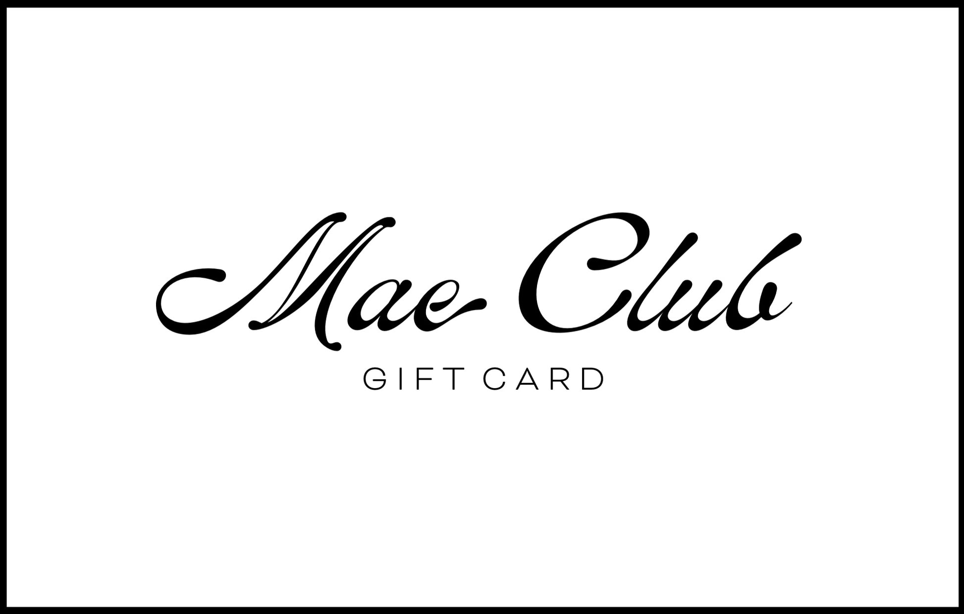 Shopping for someone else but unsure what to get them? Give them the gift of their choice with one of our MAE CLUB gift cards. Choose your desired amount and then add to cart.