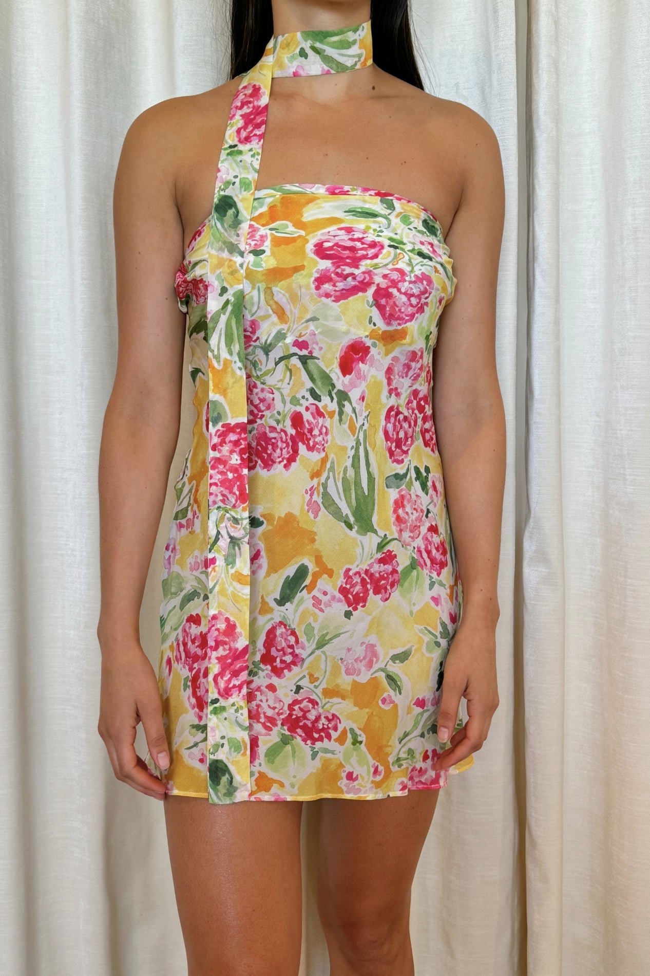 With a soft cowl neckline and adjustable halter straps, our Isabel Mini is bias cut to drape effortlessly across your body. The Isabel can be worn two ways; as a halter tied at the neck or strapless by tying the straps around the back. The cowl is fully adjustable with extra fabric that can be gathered or extended for your desired coverage. Cut from silk chiffon featuring our exclusive hand-painted Raspberry print, this is a fresh fruity take on a classic silhouette.