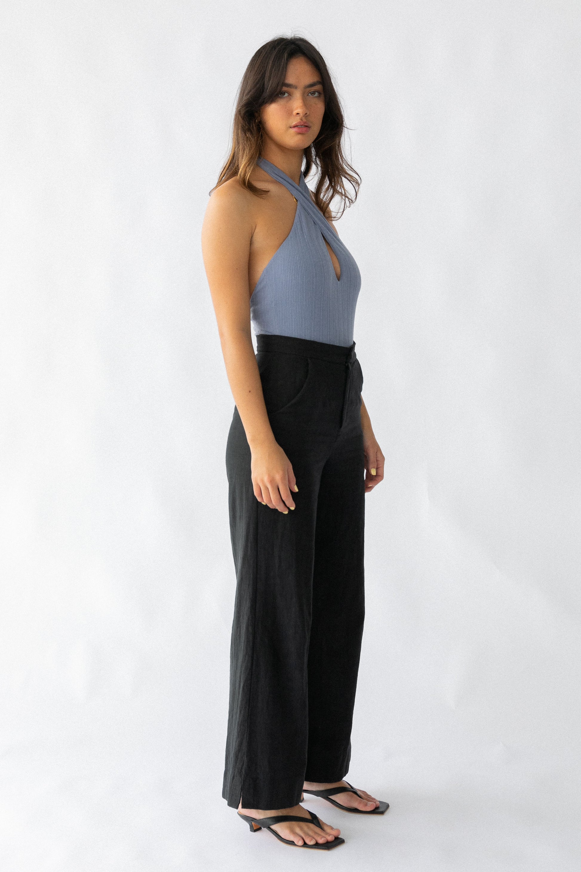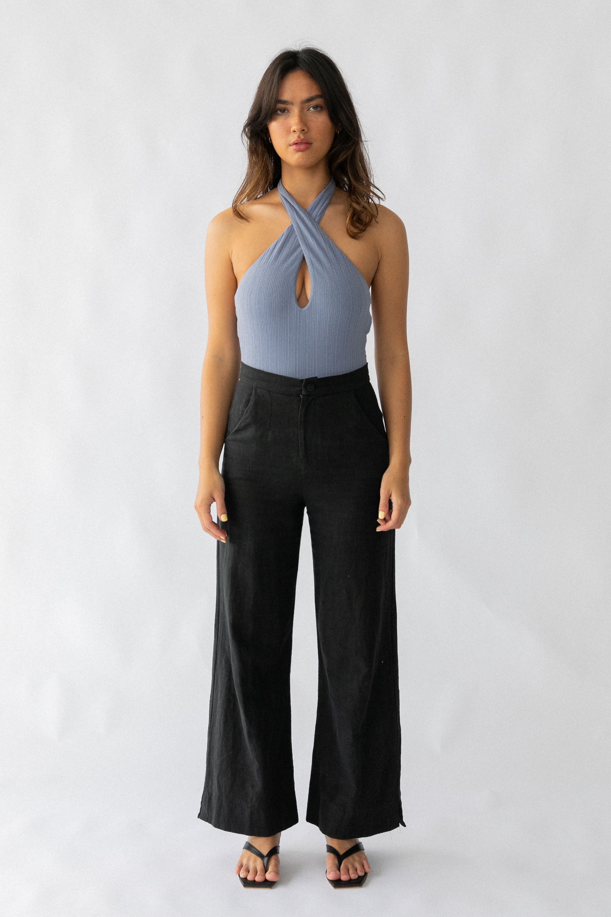 Our Juliette Bodysuit is a fitted one piece, featuring a halter style neck line with a front cut out and low scoop back.